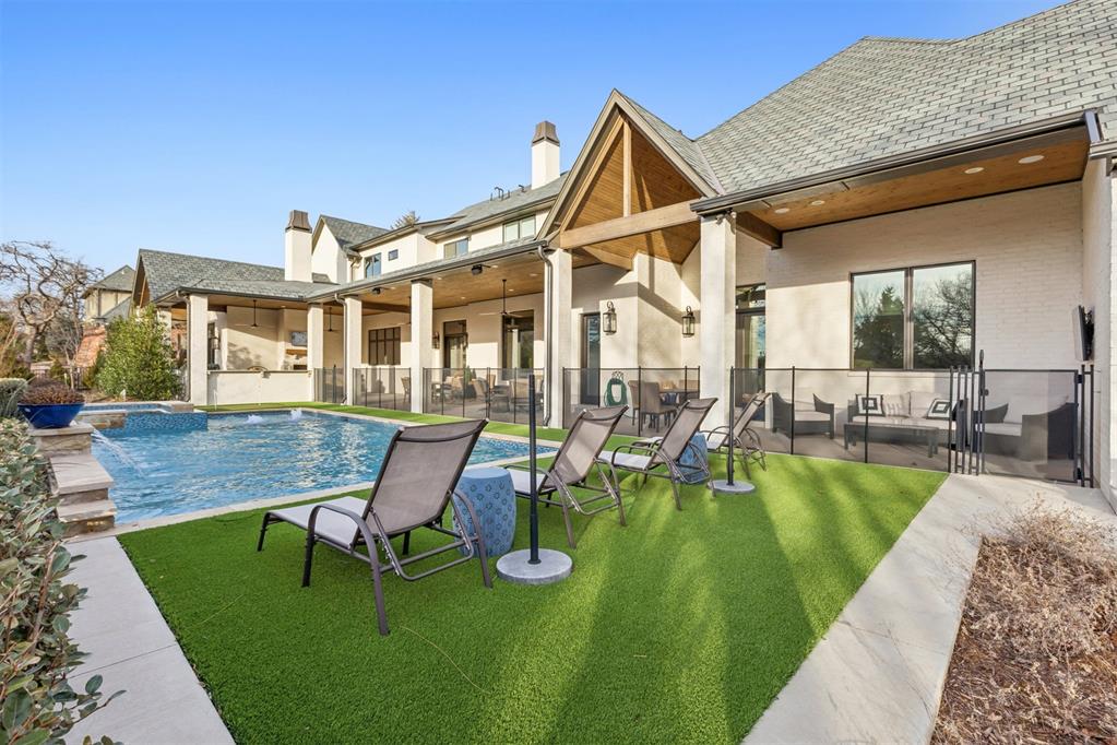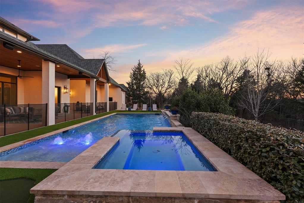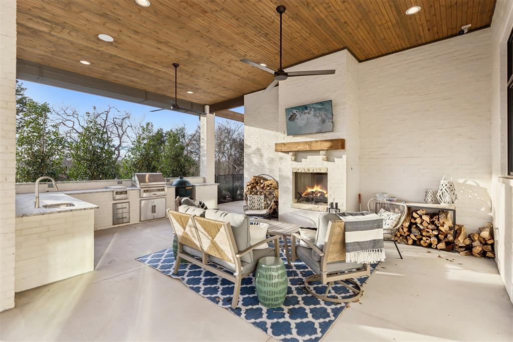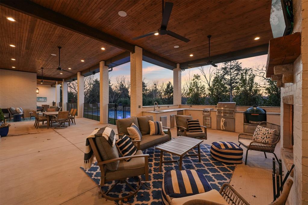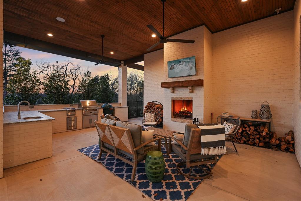 Stunning in Stonemill! An absolute beautiful custom build completed just 2 years ago! Situated on a wooded 0.73 acre lot, designed to maximize natural light while catching rays of the setting sun through tree tops! This home was so well thought out with the Primary suite on the first floor PLUS a very rare full Mother-in-Law Suite with its own entrances, Kitchen/Living/Bedroom/Bathroom/Laundry appointed with the same design and finishes as the main portion of the home! Truly a multi-generational living property! 22' entry ceilings set the tone with a formal Study bordered with beautiful iron glass walls and formal dining on each side! Pass through the entertainment bar with an icemaker and drink refrigerator to get the party started! This kitchen is oversized in every way with picture windows overlooking the back patio, ample storage, double dishwashers, panel finished refrigerator and continues into the butler's pantry with additional sink, double ovens, secondary fridge/freezer and additional cabinetry! The breakfast room shares space in the kitchen with a beautiful double sided stone gas fireplace and TV! The adjacent pet room with built in crates with exterior turf yard designed perfectly for your fur babies! The Primary Suite has a wood beamed vaulted ceiling with patio access, stunning bathroom retreat with oversized shower, soaking tub, double vanities and a large closet with extra stackable washer and dryer! Upstairs has 3 bedrooms all well appointed, 2 full bathrooms, a bonus fitness space and large walk in Spray Foamed Attic for additional storage! The 100' wide back patio offers the perfect entertaining space with a full kitchen and gas wood burning fireplace, stunning pool with water features and the perfect hot tub for sunsets! Bonus turf around the pool plus a putting green for total entertainment! Additional features include 4 car garage, above ground saferoom, gas generator, Savant System, additional parking, tankless water and spray foam!