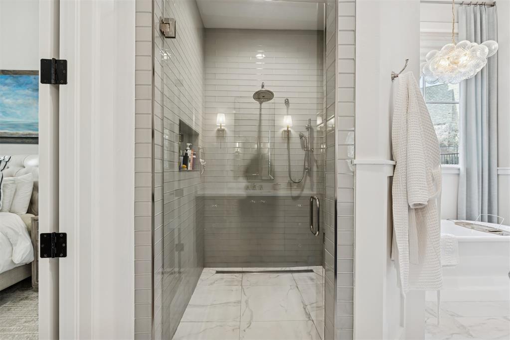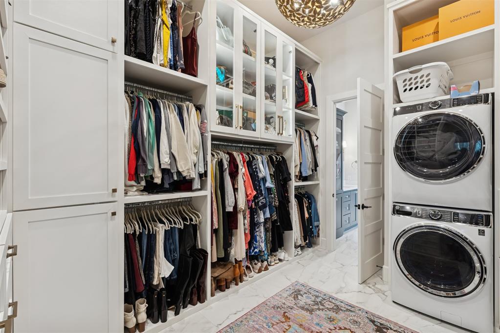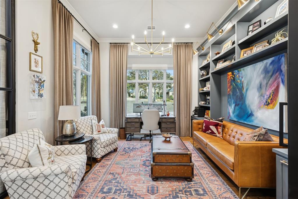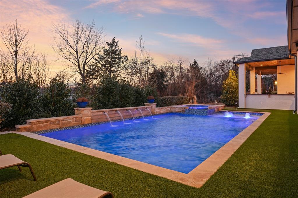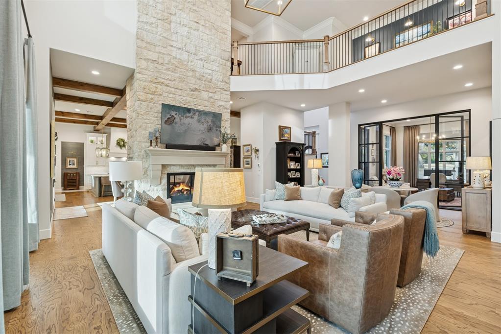 Stunning in Stonemill! An absolute beautiful custom build completed just 2 years ago! Situated on a wooded 0.73 acre lot, designed to maximize natural light while catching rays of the setting sun through tree tops! This home was so well thought out with the Primary suite on the first floor PLUS a very rare full Mother-in-Law Suite with its own entrances, Kitchen/Living/Bedroom/Bathroom/Laundry appointed with the same design and finishes as the main portion of the home! Truly a multi-generational living property! 22' entry ceilings set the tone with a formal Study bordered with beautiful iron glass walls and formal dining on each side! Pass through the entertainment bar with an icemaker and drink refrigerator to get the party started! This kitchen is oversized in every way with picture windows overlooking the back patio, ample storage, double dishwashers, panel finished refrigerator and continues into the butler's pantry with additional sink, double ovens, secondary fridge/freezer and additional cabinetry! The breakfast room shares space in the kitchen with a beautiful double sided stone gas fireplace and TV! The adjacent pet room with built in crates with exterior turf yard designed perfectly for your fur babies! The Primary Suite has a wood beamed vaulted ceiling with patio access, stunning bathroom retreat with oversized shower, soaking tub, double vanities and a large closet with extra stackable washer and dryer! Upstairs has 3 bedrooms all well appointed, 2 full bathrooms, a bonus fitness space and large walk in Spray Foamed Attic for additional storage! The 100' wide back patio offers the perfect entertaining space with a full kitchen and gas wood burning fireplace, stunning pool with water features and the perfect hot tub for sunsets! Bonus turf around the pool plus a putting green for total entertainment! Additional features include 4 car garage, above ground saferoom, gas generator, Savant System, additional parking, tankless water and spray foam!