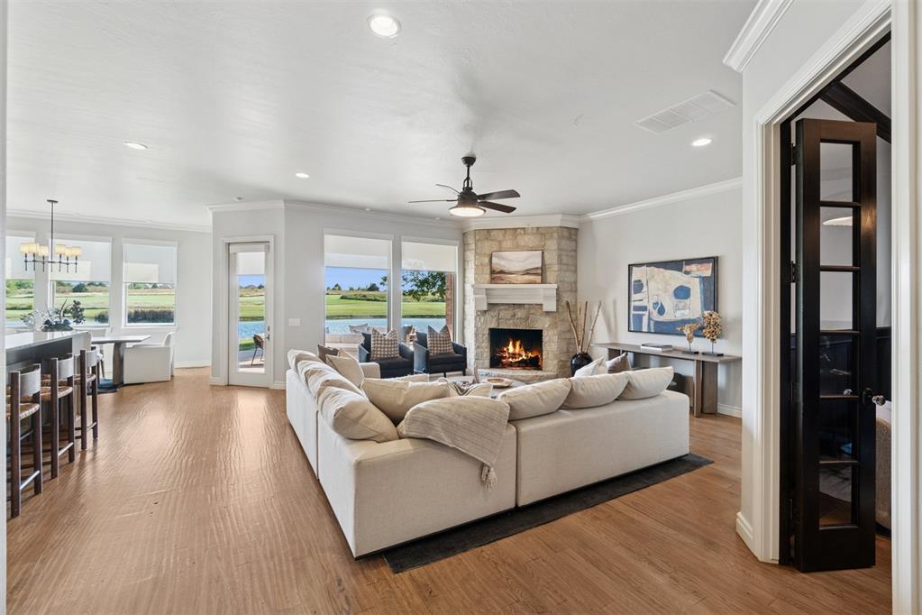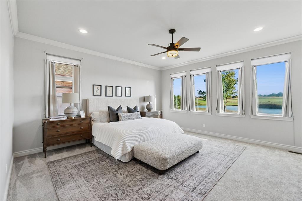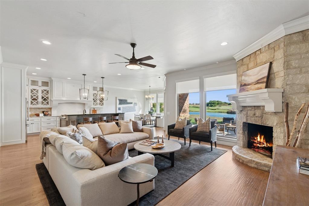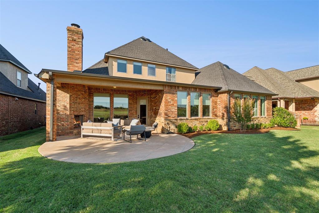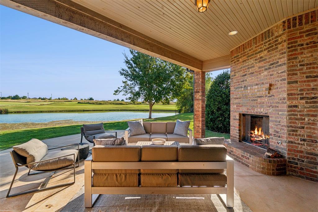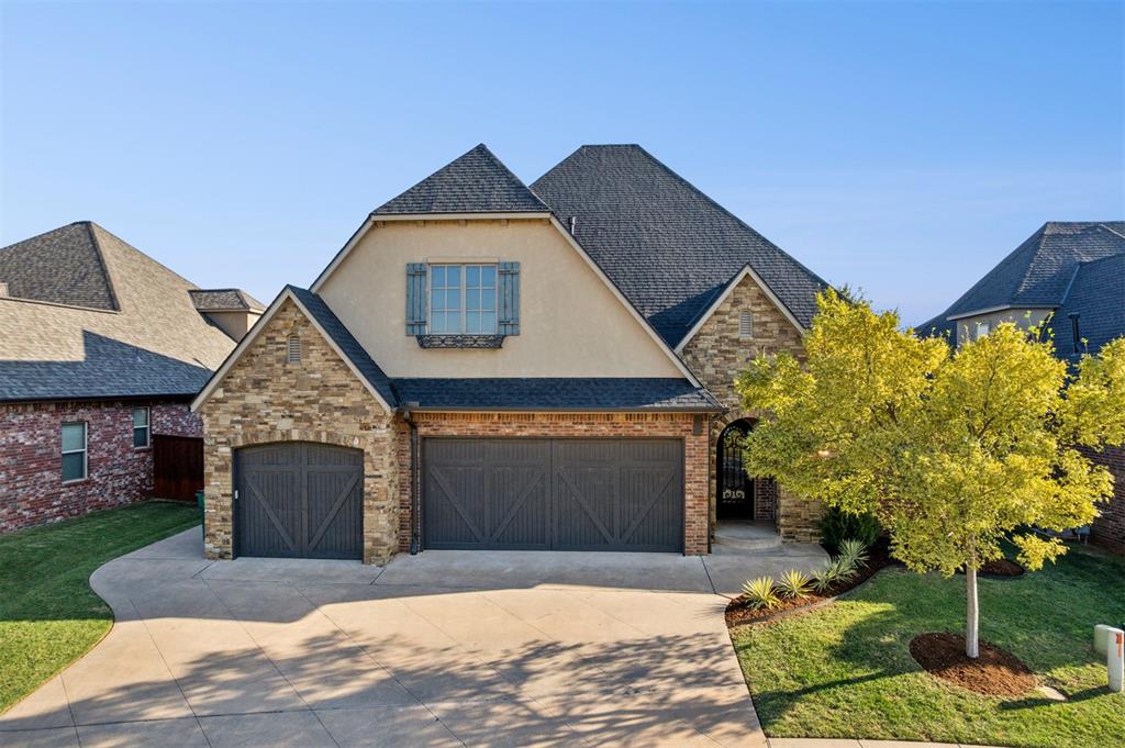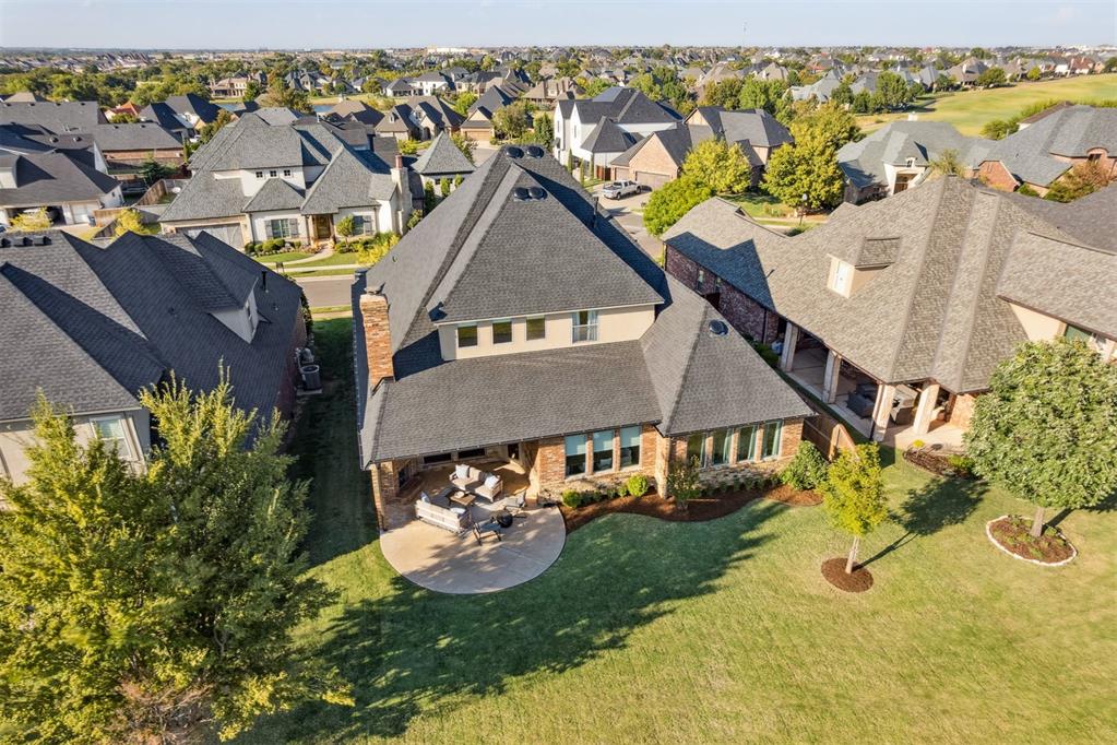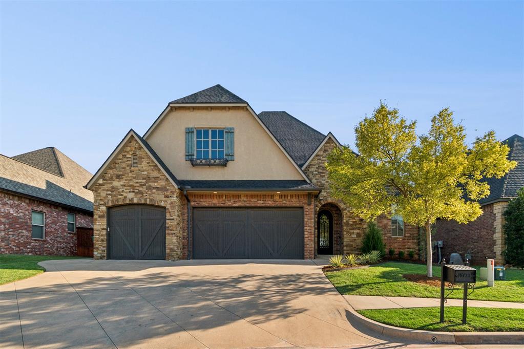 Situated on Hole #12, this beautiful home is directly on the water providing incredible views all day long! Enjoy beautiful sunsets reflecting off of the water, golfers teeing off from a distance and calm waters perfect for fishing in your backyard and nature watching! This home is so inviting with a vaulted entry nearly 20ft tall and Immediate golf and water views from the moment you enter! Designer handscraped wood floors throughout the main areas downstairs as well as the staircase and upstairs landing! Large living room with a stone gas fireplace is open to the kitchen and oversized breakfast/dining room! A Private study with glass doors provides separation! Large pantry and dry bar with archways creates a wonderful hosting space! Large Laundry tons of countertop space and storage with an adjacent mudroom storage space for shoes, jackets, backpacks, etc..! The primary suite is HUGE with picture windows overlooking the water and golf course, includes a large bathroom with separate shower and tub, 2 vanities and private toilet! Walk in closet includes tons of hanging racks and built in drawers with a power outlet perfect for your watch winder! Guest suite downstairs with en suite! Upstairs includes a big playroom with tons of natural light, full bedroom with views of the golf course and a full bathroom! PLUS, a huge walk in floored attic large enough to easily finish out a 4th bedroom, movie room or golf simulator!! Fresh landscaping, 3 car garage and a brand new AC Unit! What more could you ask for! Rose Creek is a gated community with 24/7 security personnel and includes a neighborhood pool and fitness center! And the biggest bonus is golf cart access to OKC's best restaurant, Neighborhood Provisions!! Contact the listing agent for a private showing today!