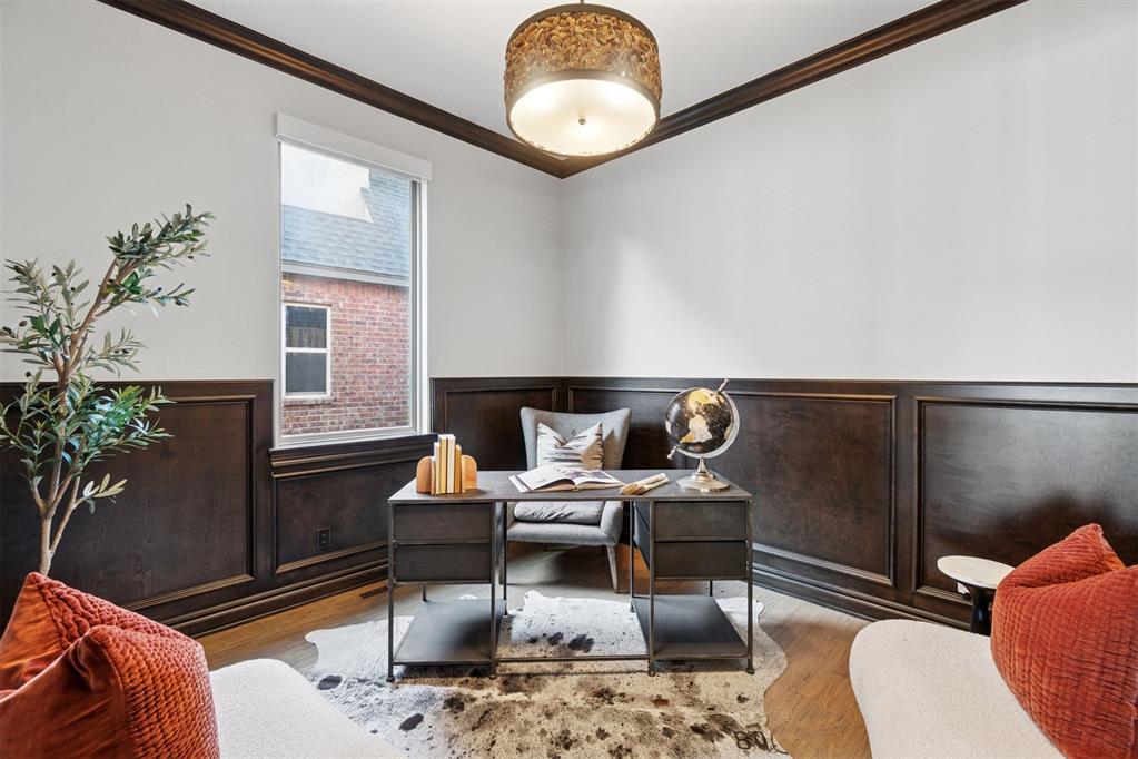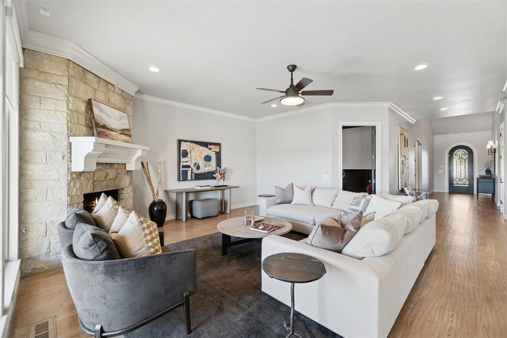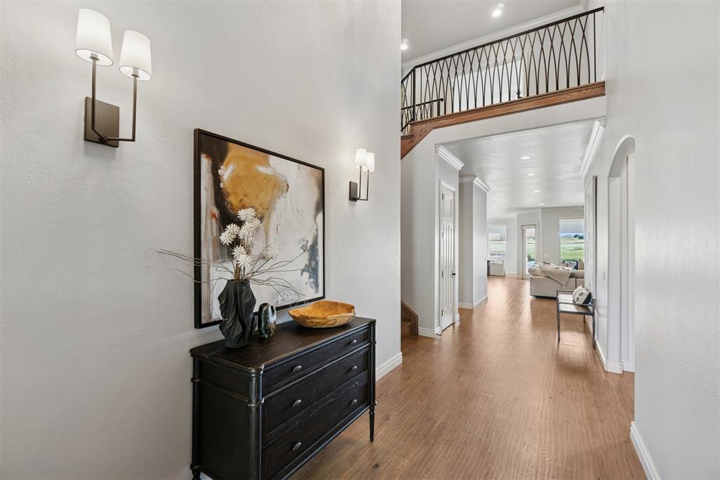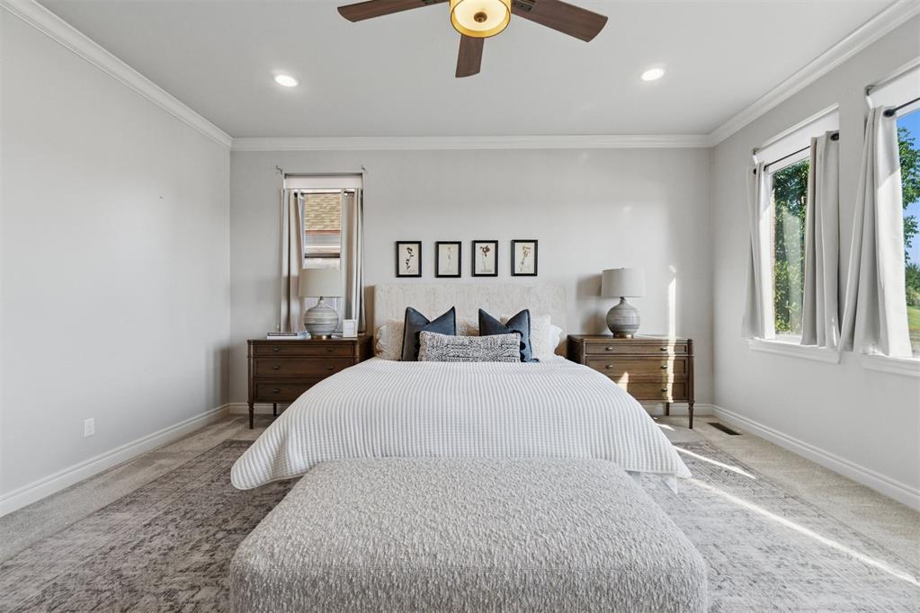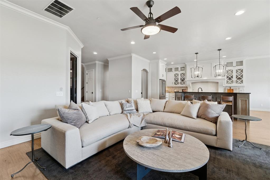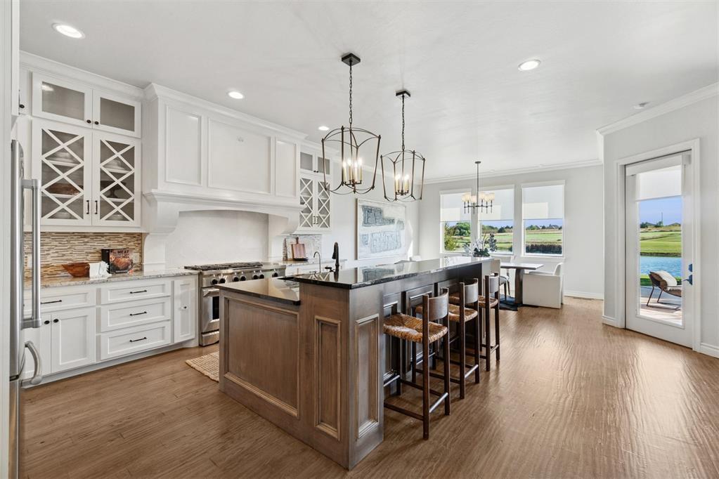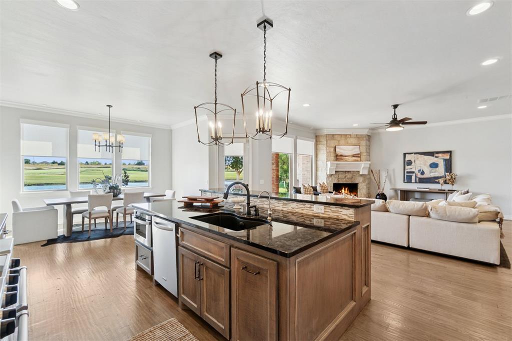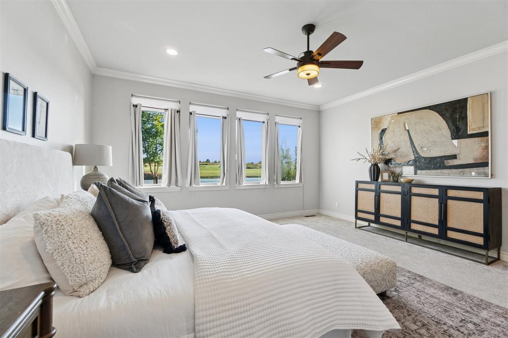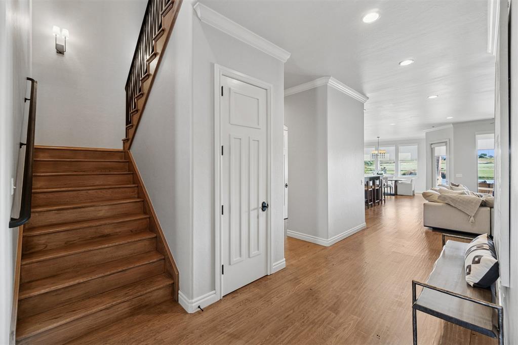 Situated on Hole #12, this beautiful home is directly on the water providing incredible views all day long! Enjoy beautiful sunsets reflecting off of the water, golfers teeing off from a distance and calm waters perfect for fishing in your backyard and nature watching! This home is so inviting with a vaulted entry nearly 20ft tall and Immediate golf and water views from the moment you enter! Designer handscraped wood floors throughout the main areas downstairs as well as the staircase and upstairs landing! Large living room with a stone gas fireplace is open to the kitchen and oversized breakfast/dining room! A Private study with glass doors provides separation! Large pantry and dry bar with archways creates a wonderful hosting space! Large Laundry tons of countertop space and storage with an adjacent mudroom storage space for shoes, jackets, backpacks, etc..! The primary suite is HUGE with picture windows overlooking the water and golf course, includes a large bathroom with separate shower and tub, 2 vanities and private toilet! Walk in closet includes tons of hanging racks and built in drawers with a power outlet perfect for your watch winder! Guest suite downstairs with en suite! Upstairs includes a big playroom with tons of natural light, full bedroom with views of the golf course and a full bathroom! PLUS, a huge walk in floored attic large enough to easily finish out a 4th bedroom, movie room or golf simulator!! Fresh landscaping, 3 car garage and a brand new AC Unit! What more could you ask for! Rose Creek is a gated community with 24/7 security personnel and includes a neighborhood pool and fitness center! And the biggest bonus is golf cart access to OKC's best restaurant, Neighborhood Provisions!! Contact the listing agent for a private showing today!