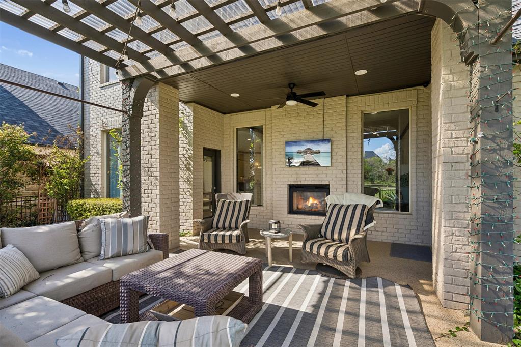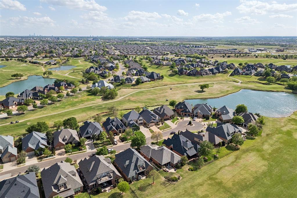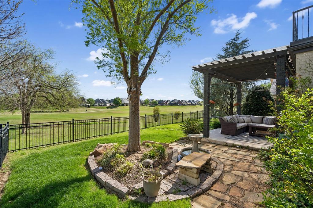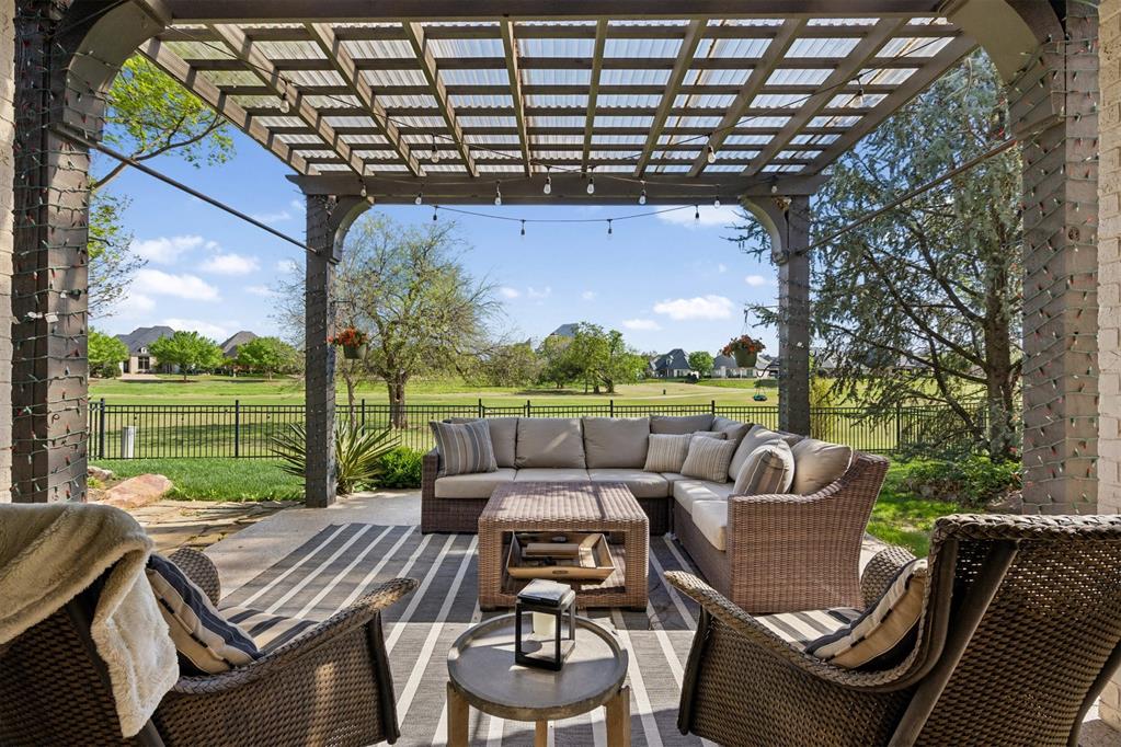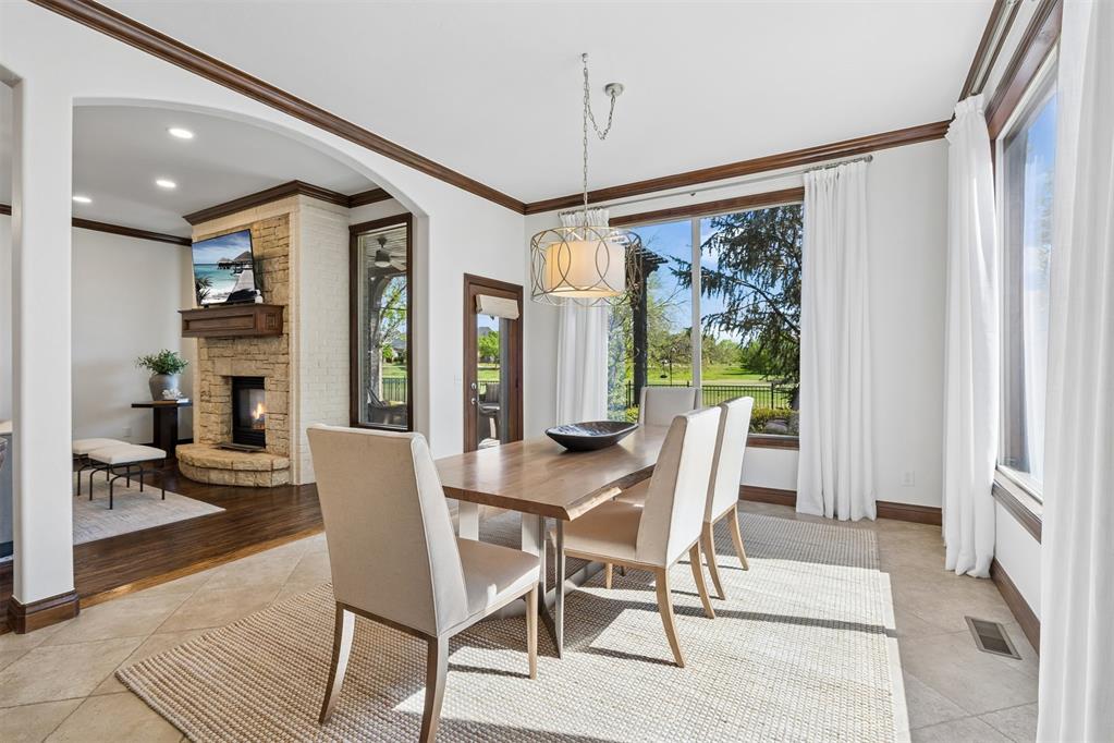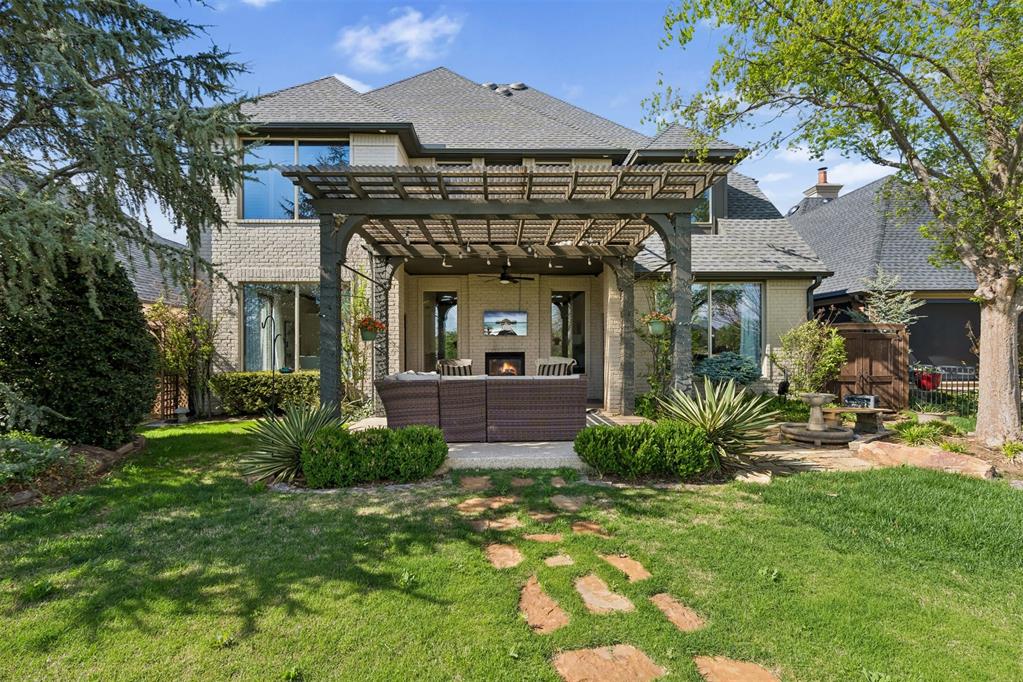 Oversized garage with epoxy floors and 5x7 in-ground storm shelter. Covered back patio with outdoor fireplace overlooking the course.