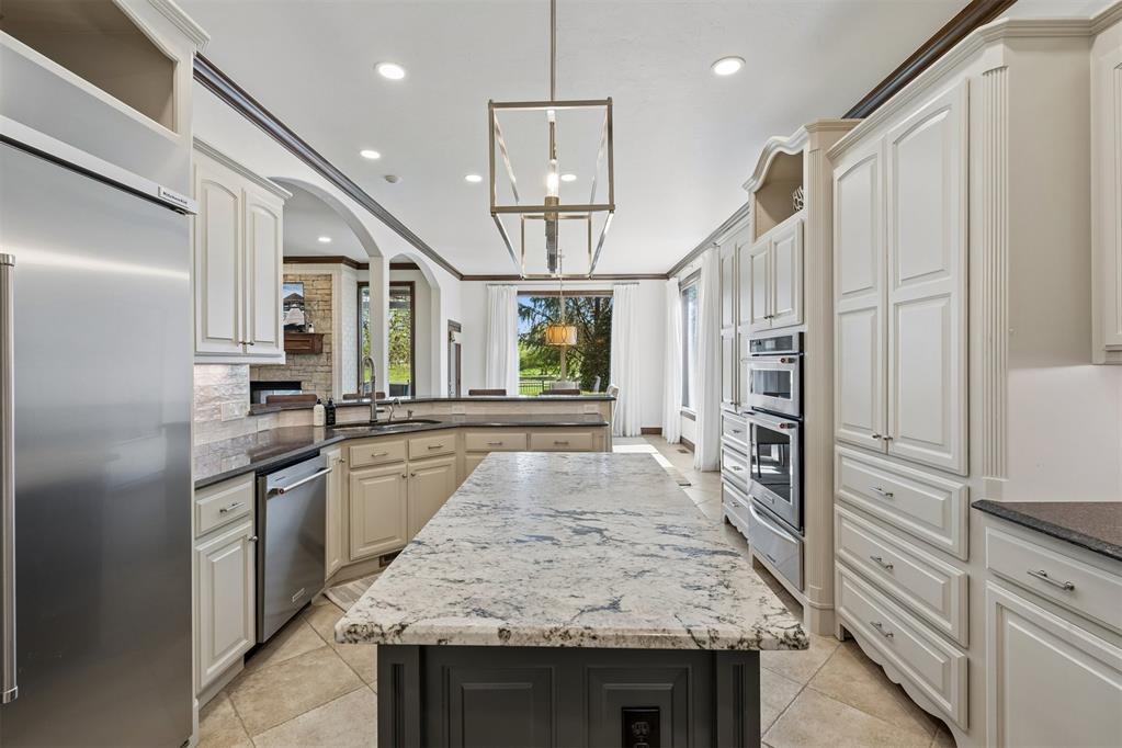 Recent updates include KitchenAid stainless refrigerator, convection microwave/oven combo, dual-fuel range, dishwasher, new kitchen paint, exterior refresh, new carpet, updated lighting, new primary bath countertops, kitchen island countertop, fresh interior paint and whole-home generator by Generac.