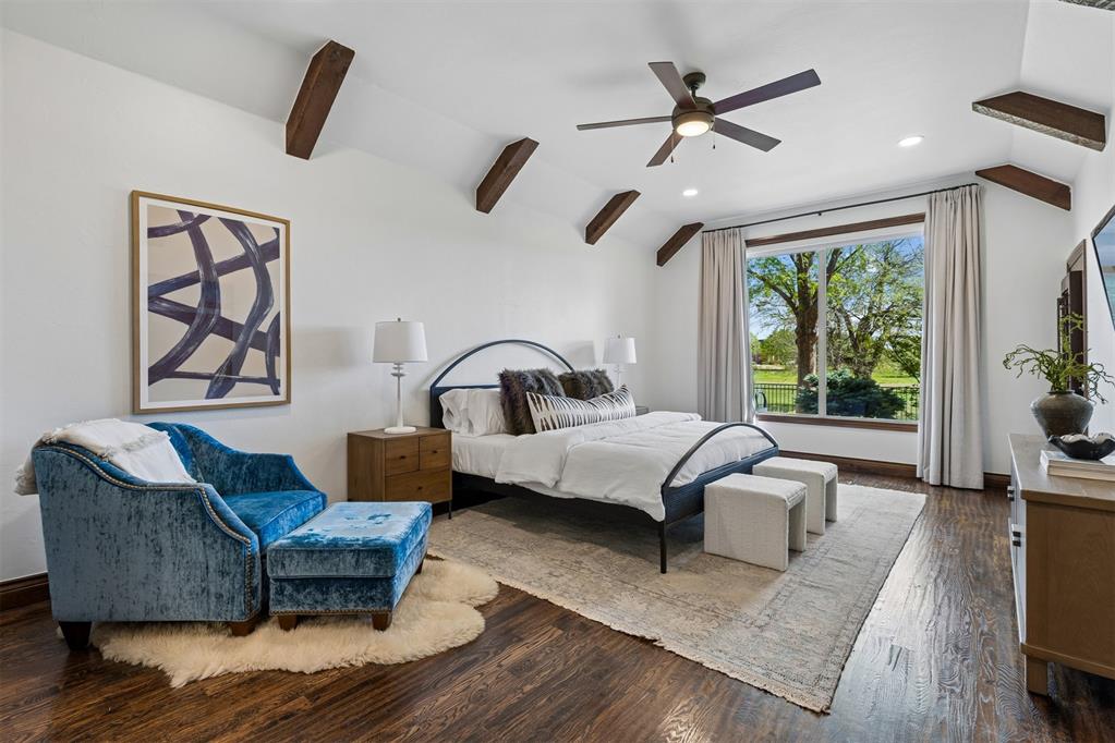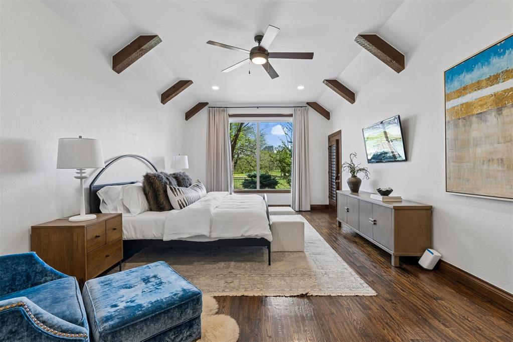 Custom built home backing to the 11th green of the newly remodeled Rose Creek Golf Course. Located on a quiet cul-de-sac in the highly sought-after Rose Creek neighborhood with 24/7 security. Large picture windows capture golf course views while hardwood floors and solid surface flooring run throughout the main level. Plantation shutters provide abundant natural light. Oversized secondary bedrooms offer generous space.