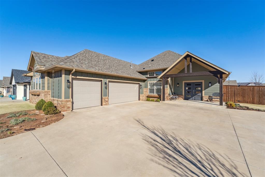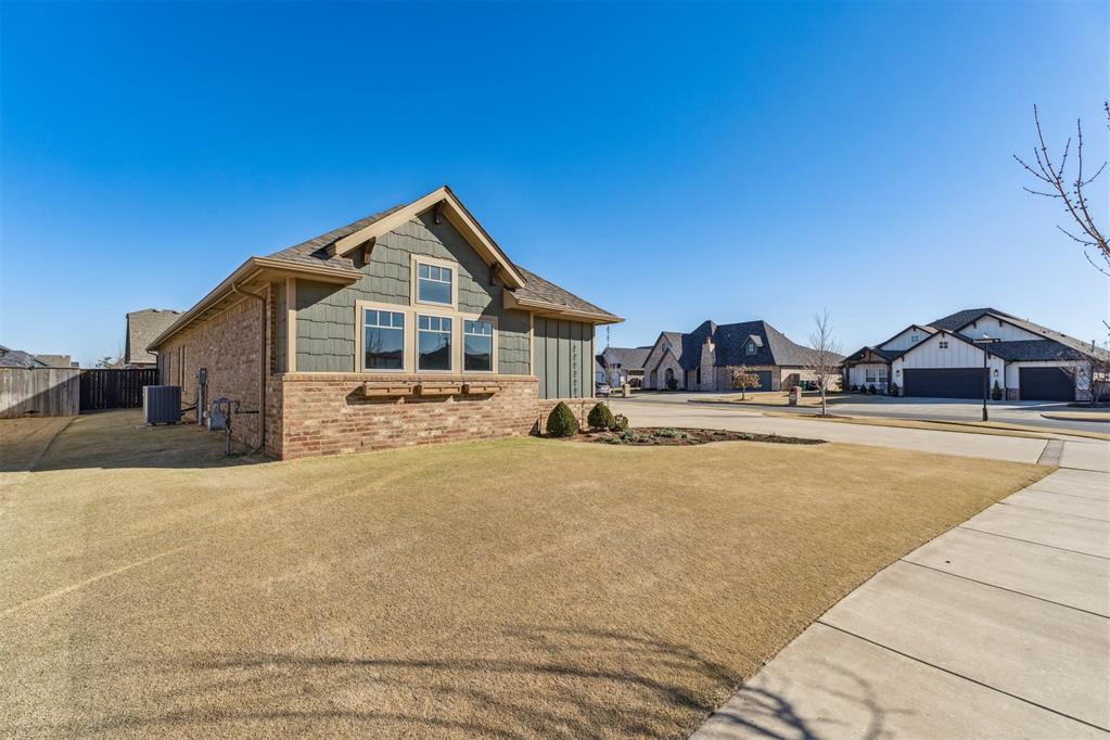 Wonderful newer build in gated Cobblestone Curve! This great floor plan offers an open layout with lots of natural light shining through! Upon entering through the double doors, you step into the foyer that leads to the vaulted living room centered by a great fireplace with wood paneling to the ceiling! 2 Sets of sliding glass doors offers tons of natural light and access to the quaint covered back patio! The open kitchen is connected with a large island with barstool seating and great storage. Also connected is the wonderful dining space with gorgeous RH Chandelier setting the tone for a wonderful entertaining space! The Primary Suite has all new paint and brand new carpet! Great bathroom layout with soaking tub, glass shower and 2 vanities! Great walk in closet with a full length mirror installed! 2 Guest bedrooms also have all new paint and brand new carpet! The hall bath is styled perfectly and can also serve as a full bathroom for the Study as a 4th bedroom! 3 car garage offers great parking and storage as well as the large driveway! The backyard is perfect for relaxing under the vaulted patio and the yard has been maintained by professional equipment rivaling the fairways of the best courses in OKC! Enjoy the tree lined streets behind the gates! Take a plunge in the neighborhood pool! Time to make this wonderful home yours! Contact the listing agent today for a private showing..
